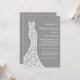 Um vestido de noiva romântico acentua esta chá de panela num fazer de fundo ilustrado de cinza, perfeito para o chá casual, rústico, de campo, de vintage, moderno ou elegante. Este convite é apresentado no documento de base; no entanto, recomendo o peso e a textura do papel de linho.