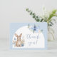 Elegante chá de "coelhinho pequeno" boêmico temático de bebê, obrigado cartas com coelhinho de água fofo em um arco boêmico coberto por flores brancas.
