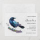 Convite de festa de aniversário com um adorável desenho em aquarela de um corvo. Cores azul escuro e roxo vibrante acentuam a beleza deste pássaro.
