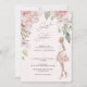 Um belo e elegante convite de 16 anos doce em tons cor-de-rosa e dourados. Este belo convite apresenta uma moça glamourosa e elegante num vestido floral cor-de-rosa, uma bolsa floral e joias brilhantes, com arcos nos seus estiletes. Há um quadro floral coordenado no topo, tudo sobre um fundo rosa esbranquiçado. "Doce Dezesseis" está escrito em uma tipografia moderna, escrita à mão. A parte traseira da placa apresenta um motivo rosa rosa muito alto. Copyright Elegant Invites, todos os direitos reservados.