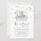 Pequena estrela giratória! Convide familiares e amigos com este convite personalizável para chás de fraldas. Apresenta um lindo panda de bebê adormecido com uma nuvem azul e estrelas de lua e ouro. Personalize adicionando seus próprios detalhes de evento. Este convite para o chá de fraldas panda é perfeito para um chá de fraldas Boy.