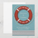 Nosso belo cartão estilo marinheiro com um salva-vidas emoldura os detalhes principais do seu casamento, incluindo a data e o local, dentro de uma bela combinação de cordas e salva-vidas.