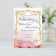 Convite de casamento com belos antecedentes artísticos e fronteira floral de ouro em gradiente cor-de-rosa, combinação entre o conceito elegante e artístico Texto editável e outros figuráveis