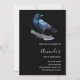 Convite de aniversário com uma adorável aquarela desenhada por um corvo. As cores azul escuro e roxo vibrante acentuam a beleza deste pássaro.