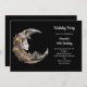 Um convite de aniversário com uma bela ilustração. Um rosto feminino na lua rodeado por flores bonito.