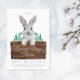 Nosso adorável e fofo Picnic Bunny & Rustic Sign Invitation no dia de Páscoa apresenta ilustração aquosa do coelho da Páscoa das cinzas moles segurando um cartaz de madeira rústico com texto que diz "Picnic no dia da Páscoa". A parte de trás do convite tem um padrão de campo ao ar livre tem ovos coloridos pintados de Páscoa, fitas e salgueiros de xícara e flores brancas de primavera. Todo o texto pode ser atualizado para fazer um convite personalizado para qualquer evento de primavera!