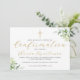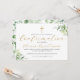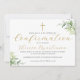 Esta bela aquarela verde Confirmação convite apresenta folhas verdes rústicas com uma simples cruz de cor dourada e um roteiro elegante de caligrafia. O verso é um bonito padrão foliar. Personalize o nome e inclua detalhes importantes para esta bela ocasião religiosa.