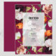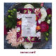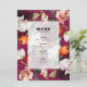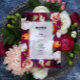 Um design de menu de casamento elegante e rico com uma mistura de lindos antecedentes de flores de verão em um fundo magenta e uma personalizável tipografia preta em um fundo transparente branco e de estrutura dourada. A linguagem das flores, conhecida como floriografia, atribui significados diferentes a vários tipos e cores das flores. Por exemplo, rosas representam amor; begônias simbolizam harmonia; dahlias significam compromisso; ranúnculo representa charme; e snapdragons significam graça.