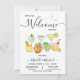 Convites de festas de cocktail de Noivado de boas-vindas com uma variedade de cocktails divertidos, como uma mula de moscou, margarita, martini, vinho e bourbon. Excelente simples e moderno. A redação pode ser alterada para qualquer ocasião, Aniversário, graduação, chás, etc.