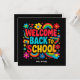 Comemore o primeiro dia da escola com esta diversão e retro Bem-vindos de volta à escola. Perfeito para rapazes, raparigas e professores no ensino básico, pré-escolar, jardim de infância, ou em qualquer grau — uma forma atenciosa de mostrar amor pelos momentos de ensino, trabalho em equipe e graduação.