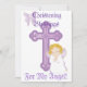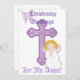 Bênçãos do Batismo do Meu Anjo. Uma Transformação Espiritual Celestial. Cruz roxa de Jesus liderando a santidade da ocasião. Uma borboleta roxa simbolizando a transformação da alma. Personalize para uma entrada dourada neste evento especial. Personalize.