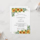 Um fundo branco decorado com girassóis, eucalipto verde. Personalize e adicione seus nomes e detalhes da festa.