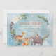 Blue Winter Framed Woodland Animal com Floral e Greenery. Urso, veado, coruja, raposa, bagas, algodão, pinheiro, flores.