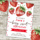 Trabalho de arte floral de cor de água de morango divertido. Morangos e florescem! Fonte de script doce. Tema de aniversário de morango doce rosa para crianças. É fácil personalizar. Também disponível como download digital! Primavera, festas de verão