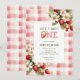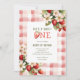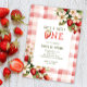 Strawberry First Festa de aniversário Berry Invitation apresenta morangos perfeitamente doces e xadrez de gingham fofo.