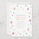 Convide amigos e família para celebrar o dia especial do seu pequeno dia com este adorável convite de aniversário, com morangos ilustrados e confete.