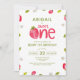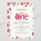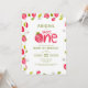 Strawberry Berry Primeiro Convite de Aniversário para uma menina que se torna doce ONE. Morangos, folhas e acentos florais brancos de cor aquosa. Convite para Berry primeiro aniversario.
