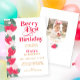 Celebre o seu primeiro aniversário com este doce convite de Berry Primeiro Aniversário. Apresentando morangos vibrantes, florais divertidos e cores alegres, este design é perfeito para uma festa de verão ou uma celebração de jardim. Personalize facilmente o nome do seu filho, a foto, os detalhes da festa e muito mais. Um tema fresco e divertido que é doce para o dia mais marcante da sua menina!