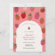 Adorável convite de aniversário apresenta morangos para uma doce aniversariante de morango. Personalize com suas informações ou clique em "Clique para personalizar mais" para editar estilos de fonte, tamanho e cores.