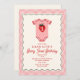 Morango com o título de aniversário "berry first", com a ilustração do bife com morango. A borda está ondulada com design de tabuleiro de xadrez rosa.