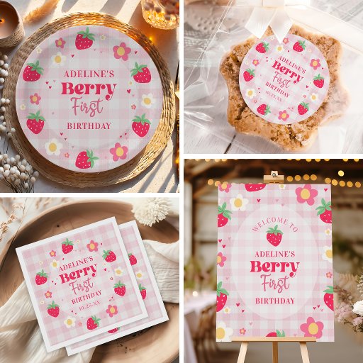 Convites Berry First Cute 1st Birthday Strawberry Photo