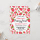 O Primeiro Convite Personalizado do Partido do primeiro aniversario de Morango Berry. Cartão de convite de festas de bebê bonito com ilustração de morangos. O texto diz "junte-se a nós para a primeira festa de aniversário de morango de XX".