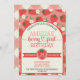 Berry Primeiro Convite de Aniversário. Apresentando morangos vermelhos com fundo rosa. Perfeito para a celebração do primeiro aniversario das suas meninas! A coordenação de convites, sinais e decorações também está disponível.