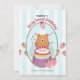 Com listras cor-de-rosa, morangos, e um urso fofinho, este convite é cheio de charme e perfeito para o seu grande dia. (Trabalho de arte Gerado por AI)