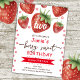 Trabalho de arte floral de cor de água de morango divertido. Morangos e florescem! Fonte de script doce. Tema de aniversário de morango doce rosa para crianças. É fácil personalizar. Também disponível como download digital! Primavera, festas de verão