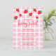 Convite de aniversário de morango doce de berço com fundo de fruta vermelha e estilo de prancheta de xadrez.
