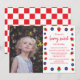 Convite de aniversário doce de berry com morangos e mirtilos com um fundo de piquenique no estilo de xadrez. Modelo de foto via Pixabay licenciado sob CC0 e deve ser substituído por sua própria foto