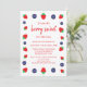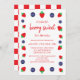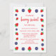 Convite de aniversário doce de berry com morangos e mirtilos com um fundo de piquenique no estilo de xadrez.