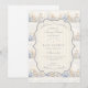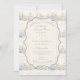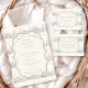 A sweet vintage-inspired design featuring delicate blue bows, soft striped detailing, and charming blueberry garden illustrations. Toile-style artwork with adorable animals and fruit baskets creates a classic storybook feel in a soft powder blue palette. The ornate central frame adds elegance while keeping the overall look light, refined, and timeless. Perfect for a baby shower with a gentle garden theme and a touch of traditional charm.