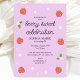 Convites de festas de aniversários de celebração de doces de morango. Qualquer idade pode ser usada! Personalize facilmente o texto com os detalhes do seu partido para que o convite seja seu!