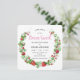 Você está pronto para uma festa de aniversário doce de morango? Este é um convite de aniversário quadrado com uma doce coroa de morangos, flores brancas e verde. É complementado com uma fonte divertida e um adorável lado inverso das sementes de morango. Perfeito para a celebração da festa de aniversário de uma menina a qualquer momento, de primavera a verão.