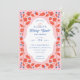 Celebre sua chegada com nosso convite para chá de fraldas doce de morango, um charmoso design com morangos desenhados à mão, mirtilos e flores florescentes. Enquadrar seus detalhes de eventos é uma delicada disposição de bagas vibrantes e flores, acentuada por uma borda decorativa que adiciona um toque elegante. Projetado em uma paleta alegre de vermelho vivo, rosa-pinto-claro e azul-claro, este convite captura perfeitamente o espírito fresco e alegre de uma celebração com o tema da fruta. O verso apresenta um buquê floral de bagas, um monograma personalizado, e um padrão sutil de linha para um visual lindamente acabado. Perfeito para encontros de verão e chás de fraldas de morango, este convite é uma forma doce e na moda de dar as boas-vindas ao seu pequeno. Ilustrações manuscritas e disposição por ©Moodthology Papery