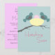 Este convite para chás de fraldas de dois lados é totalmente personalizável. Apresentando dois pássaros esperando que seu ovo rosa ecloda na frente. No verso estão os detalhes do convite.Personalização: