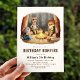 Convite de festas de aniversário de criança bonito com ilustração aquosa de animais da floresta sentados em torno de uma fogueira enquanto se tormam os "mores". Personalize os convites de aniversário de animais da floresta com o nome, idade e festa do aniversariante ou menina. Estes adoráveis convites de aniversário são perfeitos para a festa de aniversário do seu filho ou para o tema do acampamento.