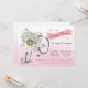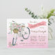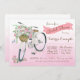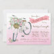 Chá de panela de bicicleta com bonito bicicleta d'água com cesto de rosas em fundo cor-de-rosa. Esses belos convites de chá de panela de bicicleta são facilmente personalizados para seu evento simplesmente adicionando seus detalhes.