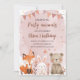 Celebre o seu dia especial com este adorável Convite de Aniversário para Animais da Festa Woodland. Apresentando uma raposa doce, coelho e urso sobre um fundo de aquarela cor-de-rosa pincelada e macia com revestimento festivo, esta design é perfeita para a floresta ou festa de aniversário temática florestal de uma menina. Personalize facilmente o nome, a idade, a data, a hora e os detalhes da festa do seu filho. Este convite encantador é ideal para primeiros aniversarios, aniversários de crianças ou chás de fraldas de florestas. Crie uma atmosfera mágica de festas e combine com suprimentos de festas de floresta para uma visão completa!