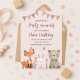 Celebre o seu dia especial com este adorável Convite de Aniversário para Animais da Festa Woodland. Apresentando uma raposa doce, coelho e urso sobre um fundo de aquarela cor-de-rosa pincelada e macia com revestimento festivo, esta design é perfeita para a floresta ou festa de aniversário temática florestal de uma menina. Personalize facilmente o nome, a idade, a data, a hora e os detalhes da festa do seu filho. Este convite encantador é ideal para primeiros aniversarios, aniversários de crianças ou chás de fraldas de florestas. Crie uma atmosfera mágica de festas e combine com suprimentos de festas de floresta para uma visão completa!