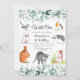 Os animais da floresta cômoda são o primeiro aniversário, verão, rústico, floresta, ao ar livre, país, boho, eucalipto, botânico, verde-água, aquarela, 1rua Primeiro Convites de festas de aniversários. Mão pintada a aquarela de animais de floresta por mim. Personalize-o com seus detalhes.