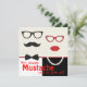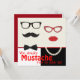 Lábios vermelhos divertidos e óculos, bigode e gravata borboleta, adereço para cabine de fotos, convite para festa de aniversário. Este convite de aniversário com bigode adorável é facilmente personalizado para o seu evento, adicionando os detalhes do evento, estilo de fonte, tamanho e cor da fonte e texto.