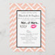 Um convite de casamento ao estilo moderno com lábios de kissy cor-de-rosa e uma ilustração retrô do bigode. Colocado sobre um fundo de cromo de pêssego. Personalize com todos os detalhes do seu casamento.