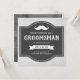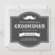 Convide seus padrinhos com este cartão de pedido rústico com um bigode clássico e tipografia vintage em um fundo de pergaminho cinza. Basta adicionar os detalhes do evento neste modelo fácil de usar para torná-lo um convite único. Vire o cartão para revelar uma textura de madeira de celeiro rústico no verso do cartão.