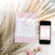 Bikinis e Martinis Elegant Vintage bachelorette convidam. Opções de fontes elegantes e design de fundo listrado com faixas cor-de-rosa. Parte de uma coleção correspondente.