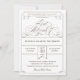 Um design temático formal, elegante, mas divertido, que empresta elementos de um tíquete de admissão vintage. As cinzas francesas em vez de pretas dão-lhe uma sensação mais moderna. Escolha seu tipo de papel, corte o chip e altere as cores conforme desejado.