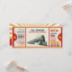 Chugga chugga! Todos a bordo do expresso de aniversário! Vamos comemora a festa de aniversário do seu filho com o nosso bilhete de embarque de trem antigo. Este convite de aniversário de tíquetes vintage apresenta um trem vintage em uma cor vermelha e dourada que brilha admite um design de tíquete. Design reverter para um trem de colheita em cor de fundo dourada brilhante. Este convite para ingressos escolares é perfeito para a primeira festa de aniversário, chá de fraldas e muito mais do seu filho.