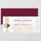 O Chá de panela Floral e Verde Elegante moderno inclui uma rosa rosa-rosa, rosa, rosa vermelha, folhas de eucalipto e outro verde botânico num copo de champanhe. Texto Dourado e brilhante. Estilo do Bilhete.