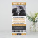 Convites de save the date temáticos de bilhete de esporte são legais e divertidos! Eles parecem um bilhete de esporte para celebrar o evento da temporada. Paleta de cores em preto e amarelo. Contate para cores personalizadas.